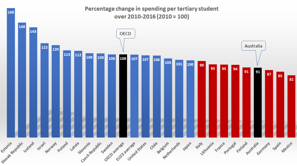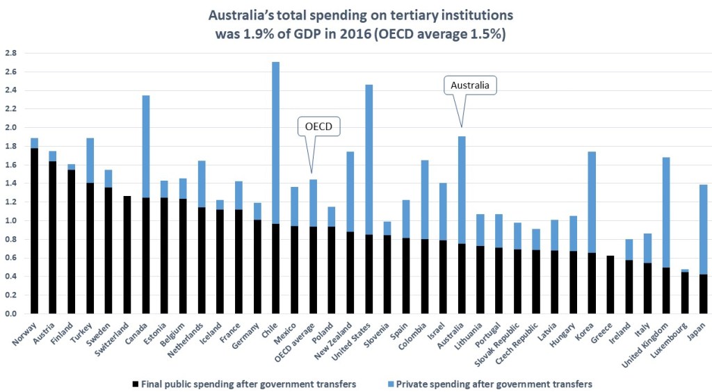 2017 The OECD ranks our public spending 30 out of 34 and in the bottom four (Universities Australia)