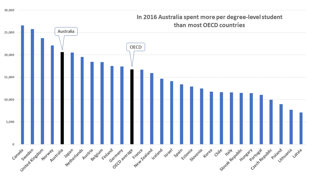 Back to the mystery: how has the Australian folklore survived for so long? A likely factor is that for the sector’s funding advocates, it has been too easy. Life is short, and OECD reports are long. Their plethora of metrics is a cherry-picker’s picnic – ripe for weaponisation in funding disputes.