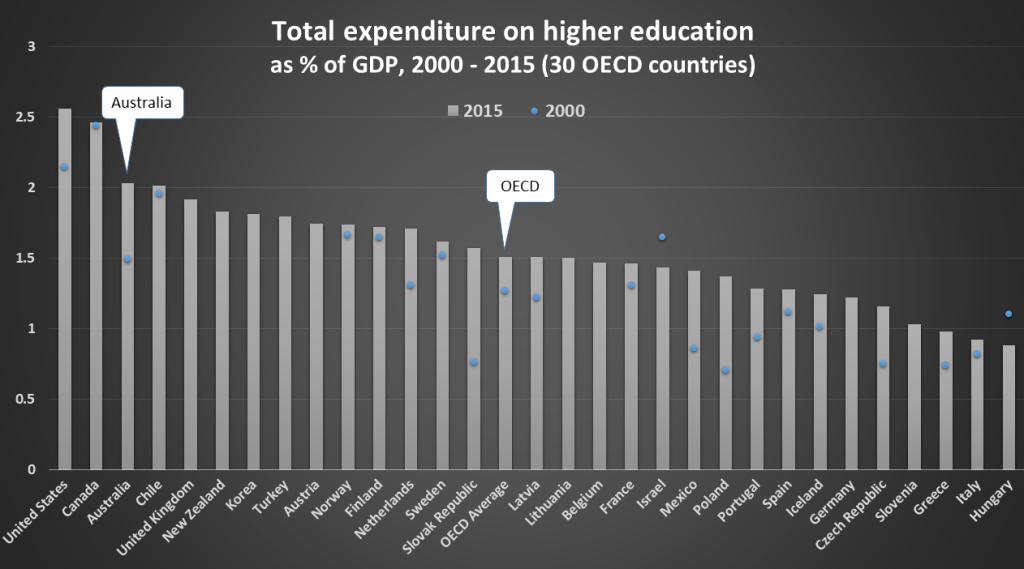 2015 Since 1995 total spending has been relatively static while growing across the OECD (Universities Australia)