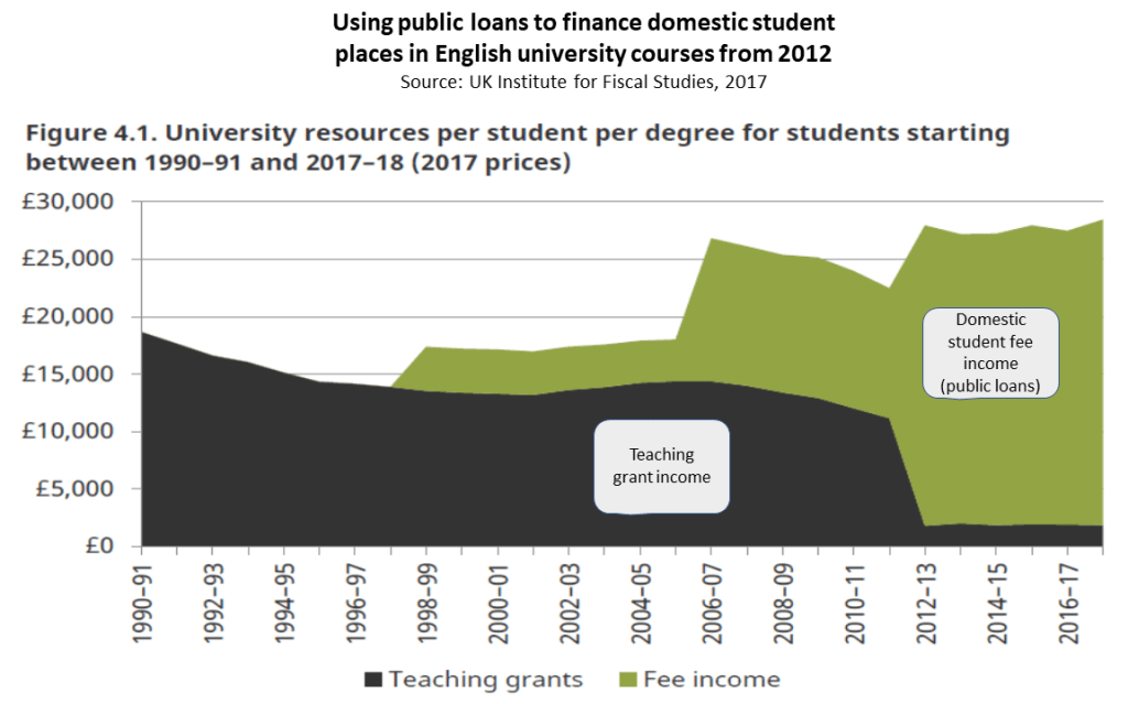 But, since access to study can be seen as “free” at the point of entry, universities have been tempted to argue for fee deregulation, despite the social equity risks and moral hazard this entails. And since loans cost less to finance than direct grants, governments too have been tempted to shift too much cost to graduates. This has happened already in the UK.