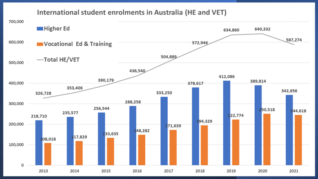 But again, only if there’s unmet demand for extra places. The Education Minister’s March 2021 data (Exhibit 3) shows no sign of growth in Management / Commerce fields. This, despite the fact that these fields normally attract high volumes of international students, and are likely to have seen pandemic-related declines. It is possible that with JRG fees now far lower in fields such as Education and Health, more students have opted for those fields in 2021 as the JRG changes assumed – but without greatly expanding total CSP enrolments beyond 2020 levels. Only time will tell.)