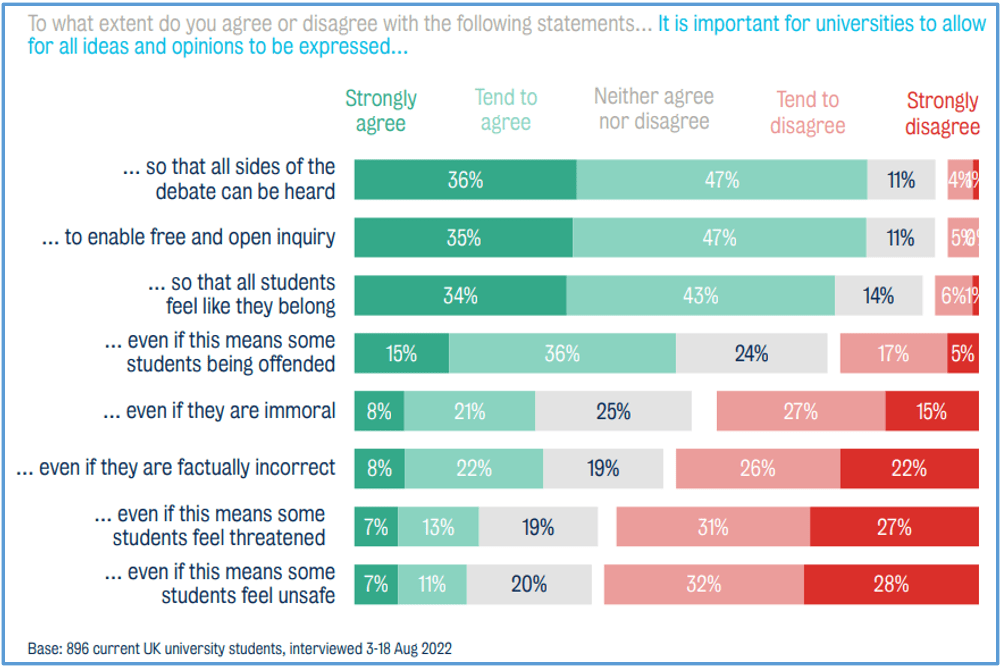 The same issue may arise with what scholars publish or teach, or how they teach it, in fields of study which touch on these issues. Recent Higher Education Policy Institute student poll data (of 1000 undergraduates) suggests greater intolerance on UK campuses toward scholars who teach “offensive” material. In 2022 some 36% of those surveyed agreed that If academics teach material that heavily offends some students, they should be fired. This compares with 15% agreeing to this proposition in a previous (2016) survey.