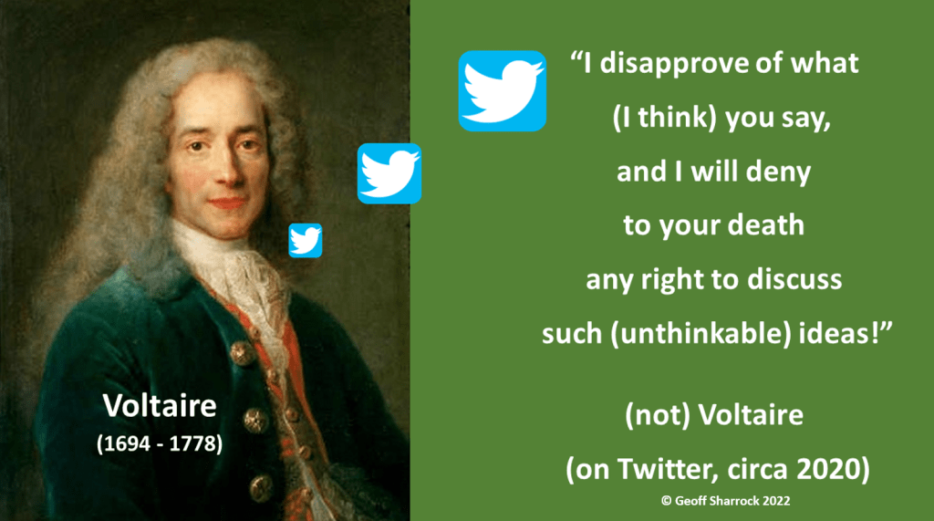 Culture-war levels of polarisation and intolerance on social media echo the religious-war persecutions that appalled Voltaire in 18th century Europe. His 1763 Treatise on Tolerance prescription for peaceful co-existence was clear: If you want us to tolerate your doctrine here, start by being neither intolerant nor intolerable. While not a free speech absolutist (he opposed slander as well as intolerance) Voltaire found the official enforcement of orthodoxy, for example by the public burning of newly published books in Paris, absurd.