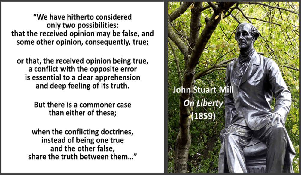 Campus cultures must keep finding ways to accommodate the fact that, on many topics and projects, scholars and students will disagree strongly, in good faith, for reasons well worth examining. Very few will be entirely right or entirely wrong. More often, as John Stuart Mill argued in the 19th century, their views on a complex matter will share the truth between them.